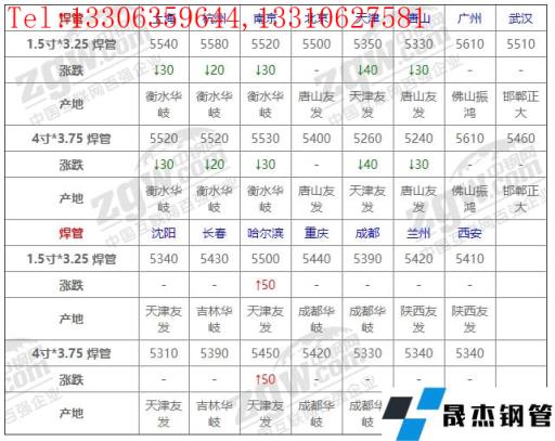 全國15個主要市場1.5寸*3.25 焊管平均價格5458元/噸,較上個交易日下調7元/噸。