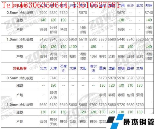 全國23個主要市場1.0mm 冷軋板卷平均價格5630元/噸,較上個交易日下調(diào)38元/噸。